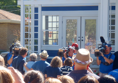 It's Wednesday, August 25. The dust and crowds have cleared away. EMHE is packing up to move on to another city. John (Jane's brother) and his wife, Cindy out of the goodness of their hearts are re-sodding and beautifying all the trampled neighbor's yards. Each of Jane's children is being interviewed individually at another location. Camera Crews are filming the inside of the home. Randy has been asked to shoot some architectural still photos inside and out.